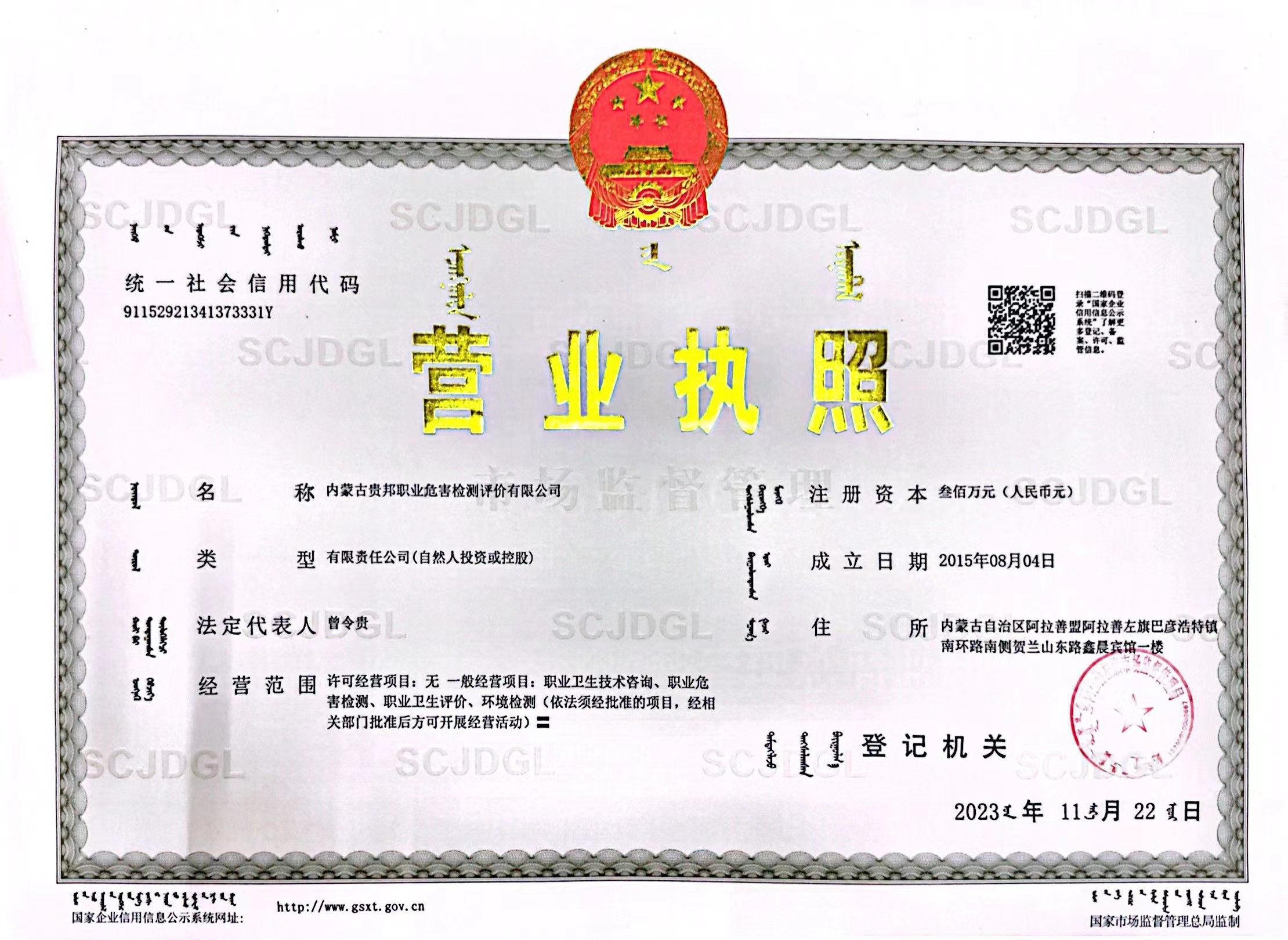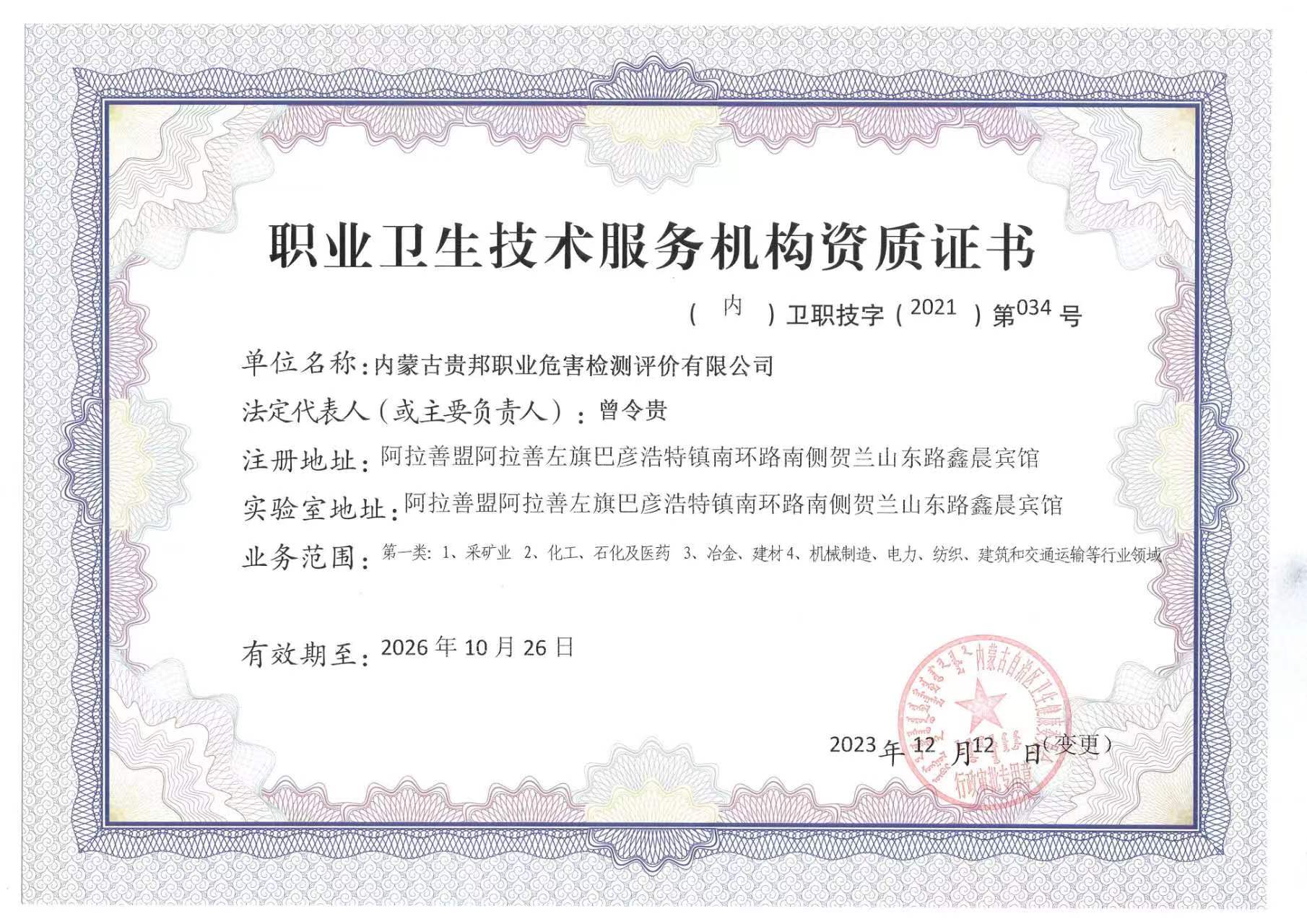 內蒙古貴邦職業(yè)危害檢測評價有限公司(www.chat06.com)版權所有 地址:阿拉善盟阿拉善左旗賀蘭山東路加氣站南側鑫晨賓館一樓 24小時熱線:18947252199 蒙ICP備:蒙ICP備21006705號-1 公安備案號:50011802010212
